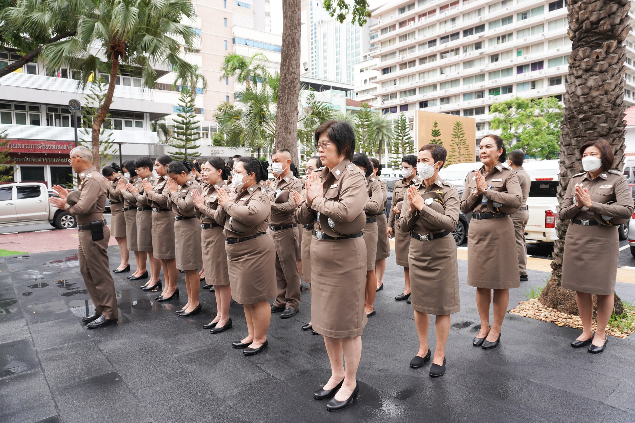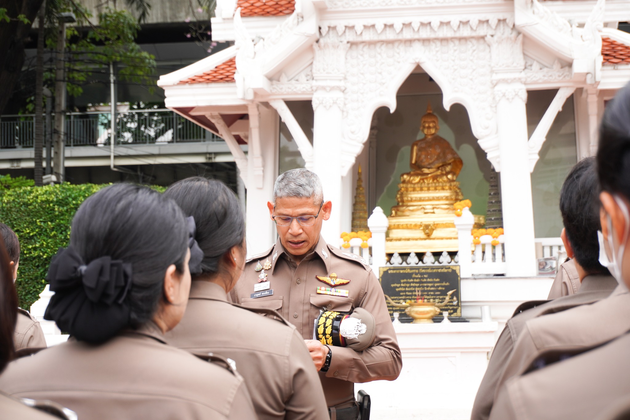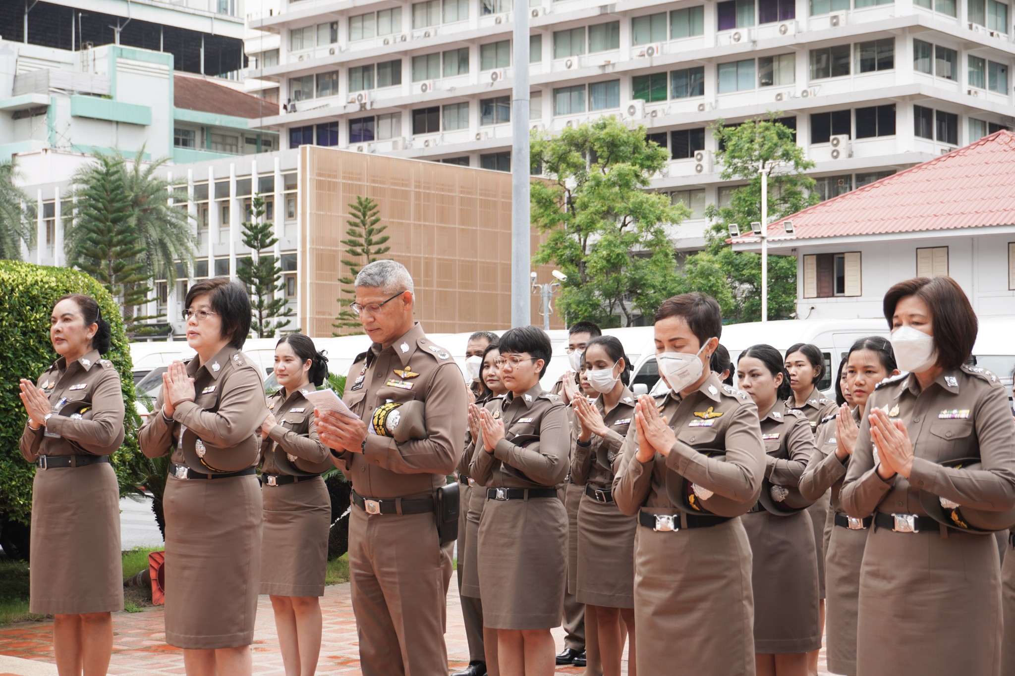ข้าราชการตำรวจ กช. ฝอ.สงป. ฝทง.สงป. ร่วมเข้าแถวเคารพธงชาติ ณ ลานด้านหน้าอาคาร 1 ตร. พร้อมสวดมนต์ หน้าหอพระนิรันตรายฯ และบริเวณหน้าศาลพระภูมิ