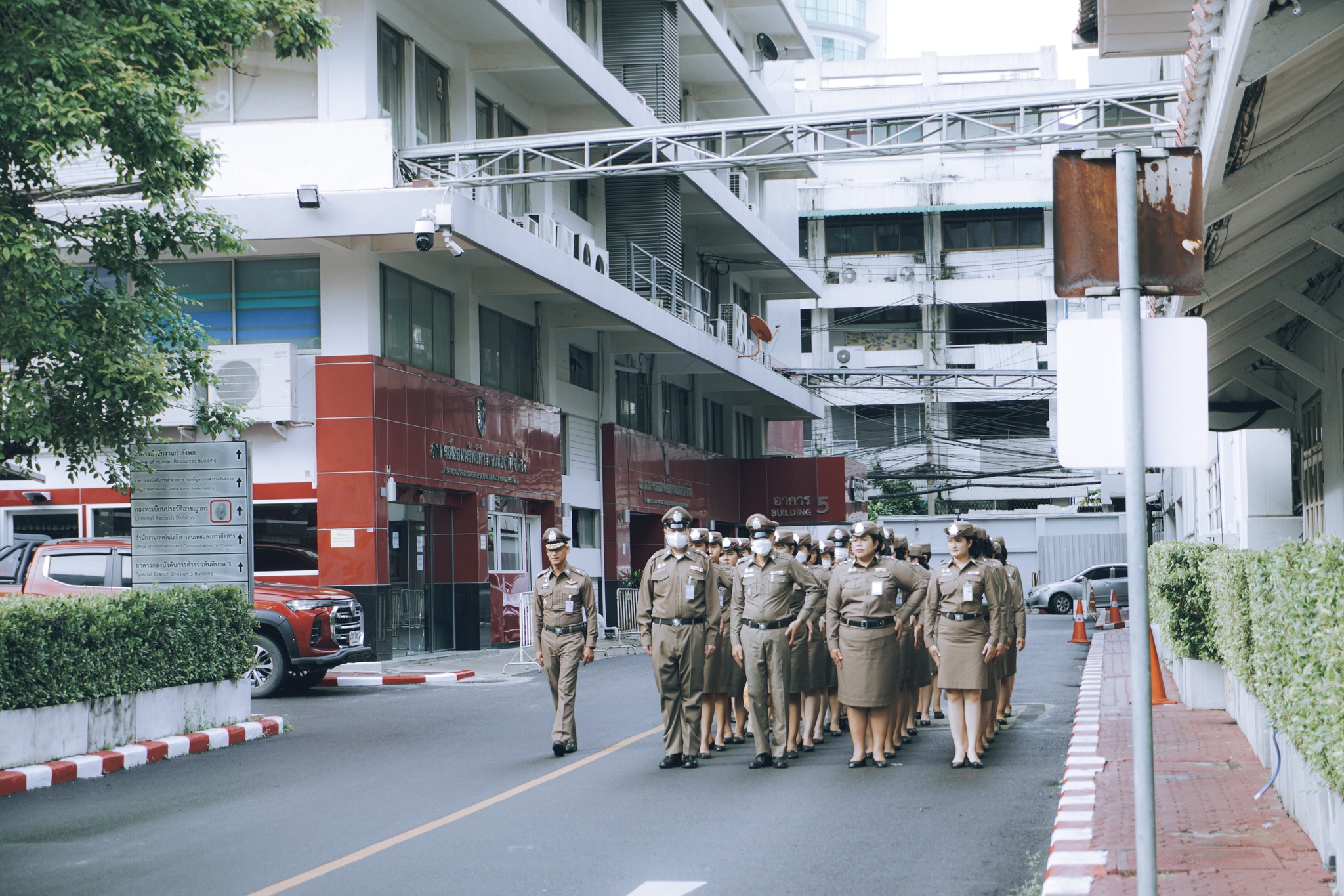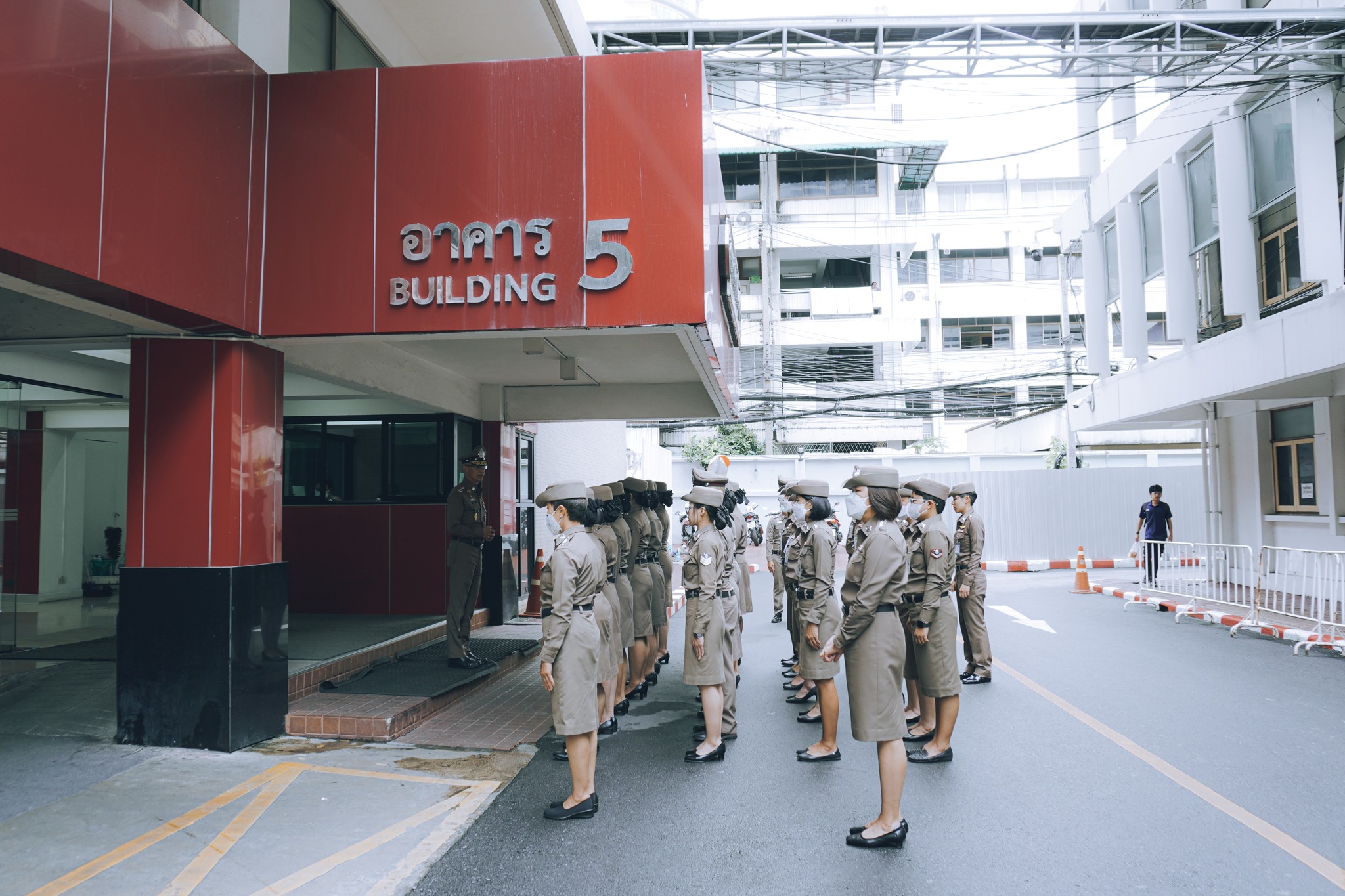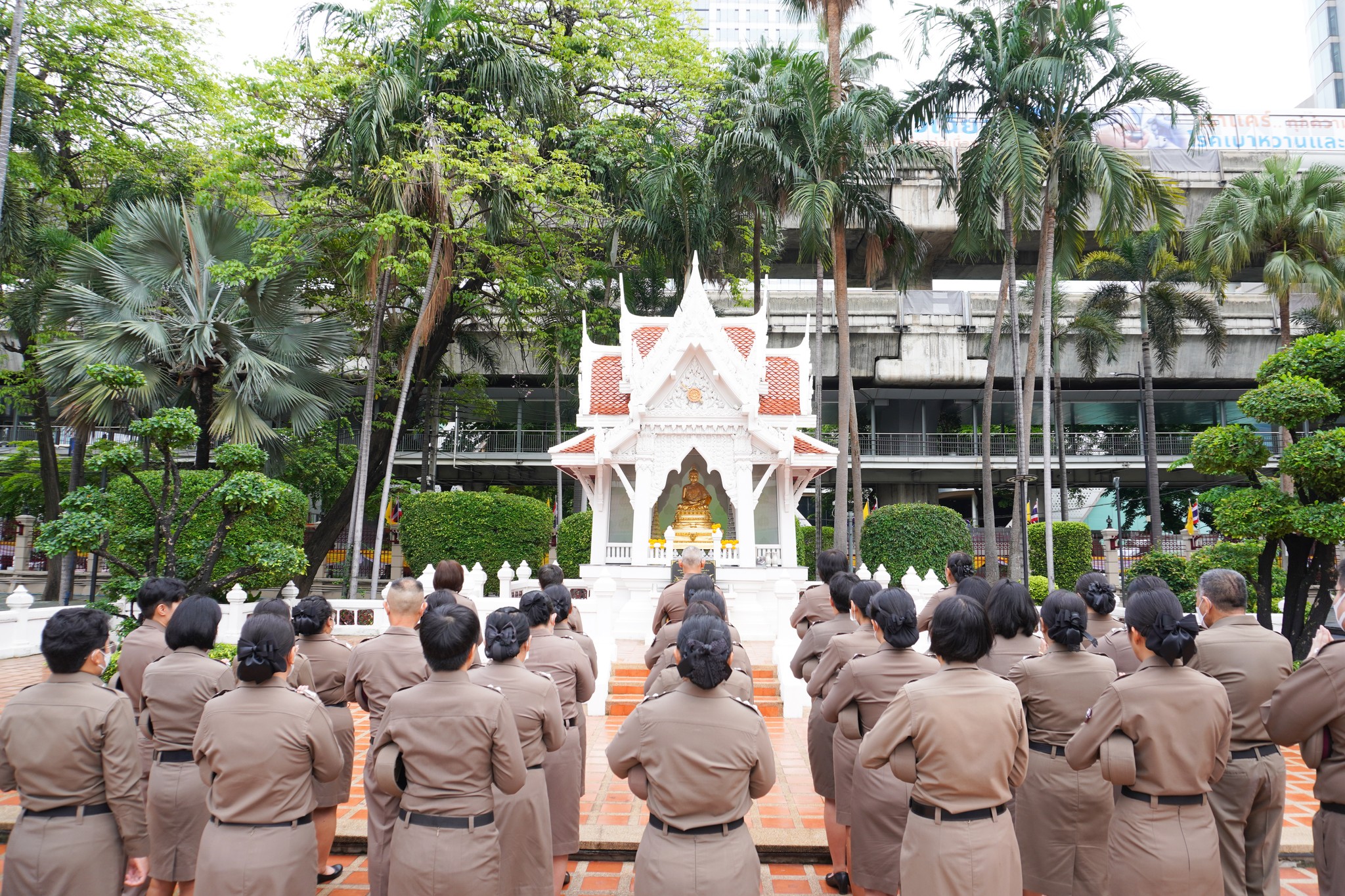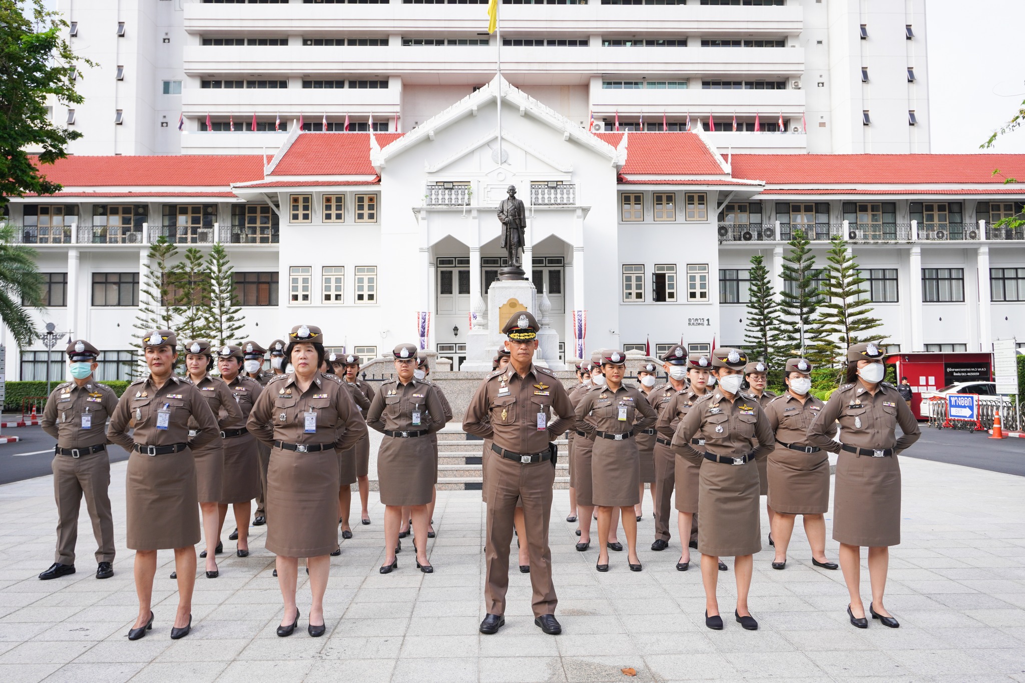 ข้าราชการตำรวจ กช. ฝอ.สงป. ฝทง.สงป. ร่วมเข้าแถวเคารพธงชาติ ณ ลานด้านหน้าอาคาร 1 ตร. พร้อมสวดมนต์ หน้าหอพระนิรันตรายฯ และบริเวณหน้าศาลพระภูมิ